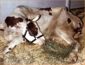 - Hipokalcemia kliniczna – objawia się osłabieniem, brakiem koordynacji ruchowej, zaleganiem, a nawet śmiercią zwierzęcia. Krowy w tym stanie wymagają natychmiastowej interwencji weterynaryjnej. Problem dotyczy ok. 6-8% krów w stadzie.