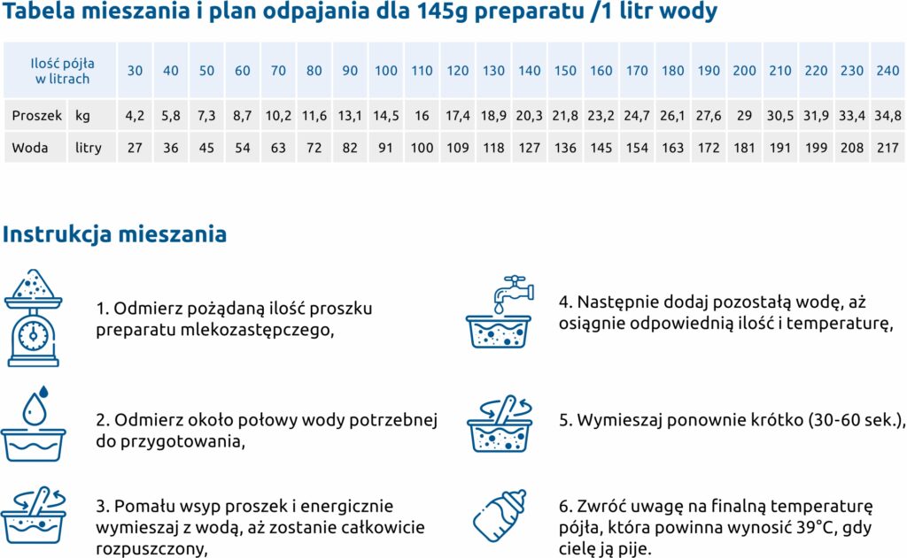 Rozwiązanie dla cieląt zaraz po odstawieniu od siary, od trzeciego do sześćdziesiątego dnia.