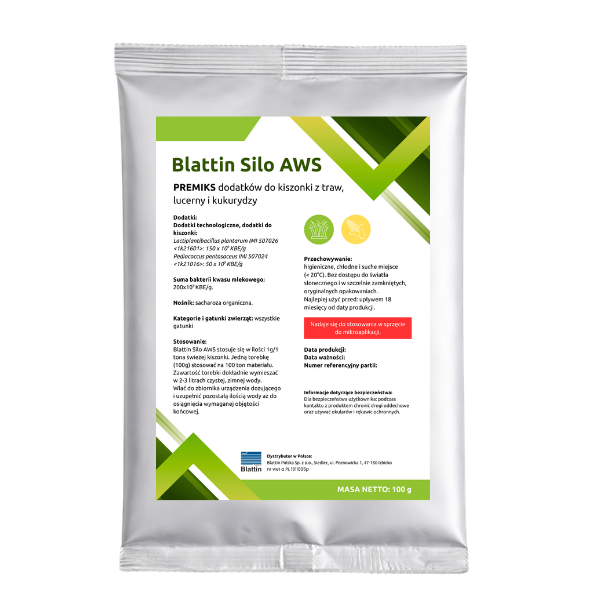 Blattin Silo AWS to wysokiej jakości biologiczny konserwant nowej generacji przeznaczony do wspomagania procesu zakiszania pasz objętościowych. Produkt zawiera starannie dobraną kompozycję homofermentatywnych bakterii kwasu mlekowego, które skutecznie inicjują i stabilizują fermentację mlekową.
